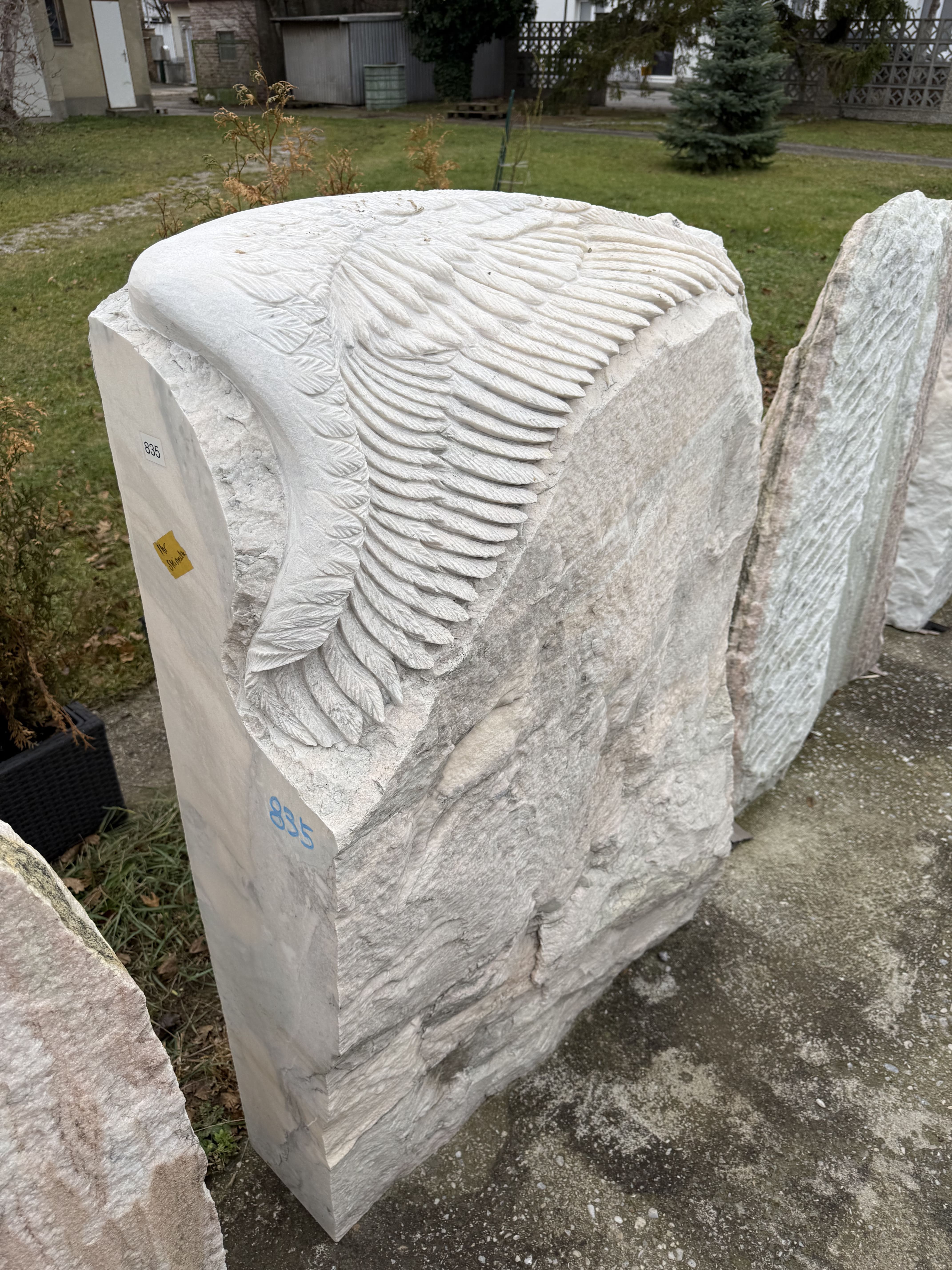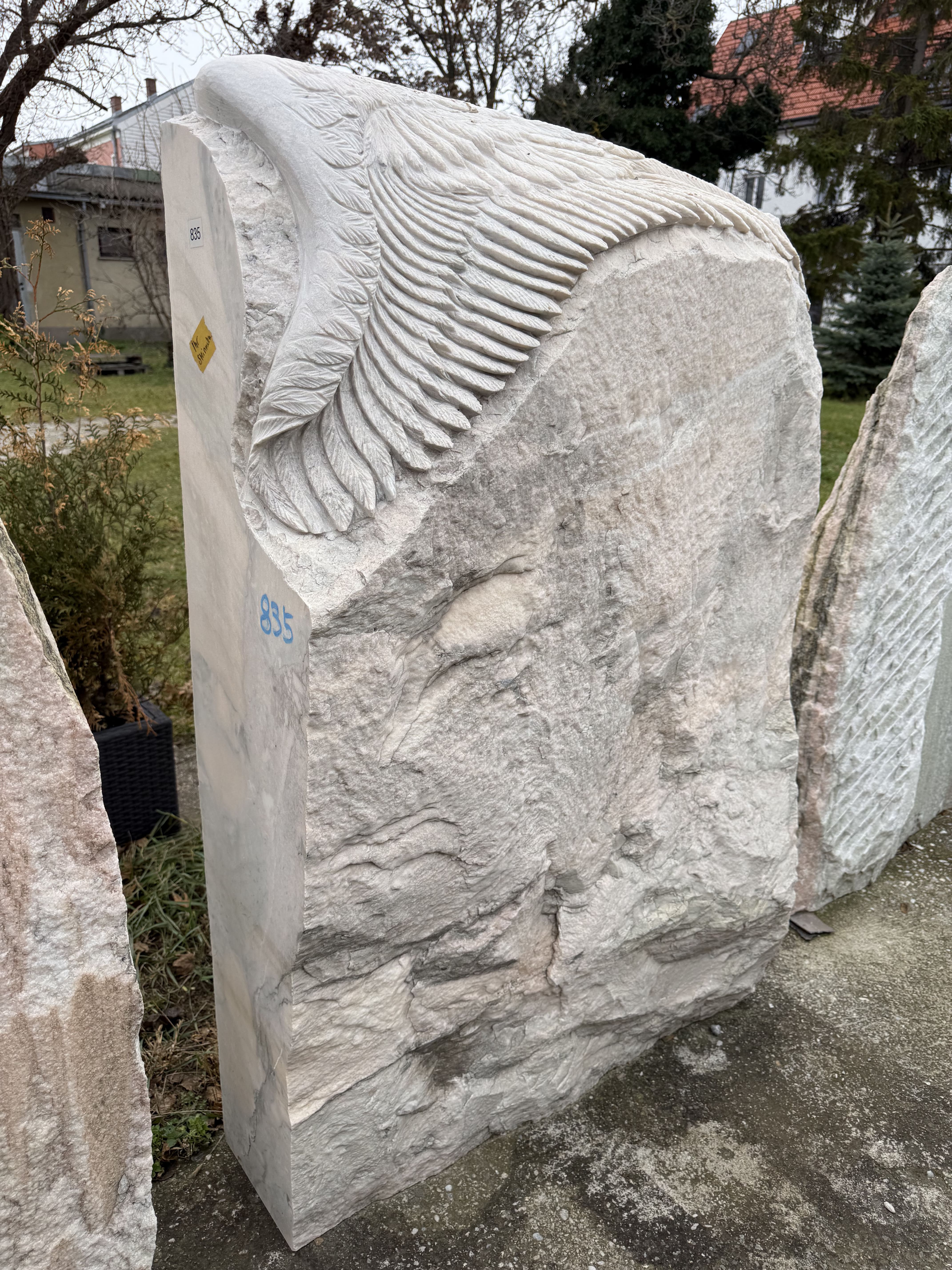 Gestaltung: Naturbelassene Vorderseite mit handgearbeitetem Flügelrelief